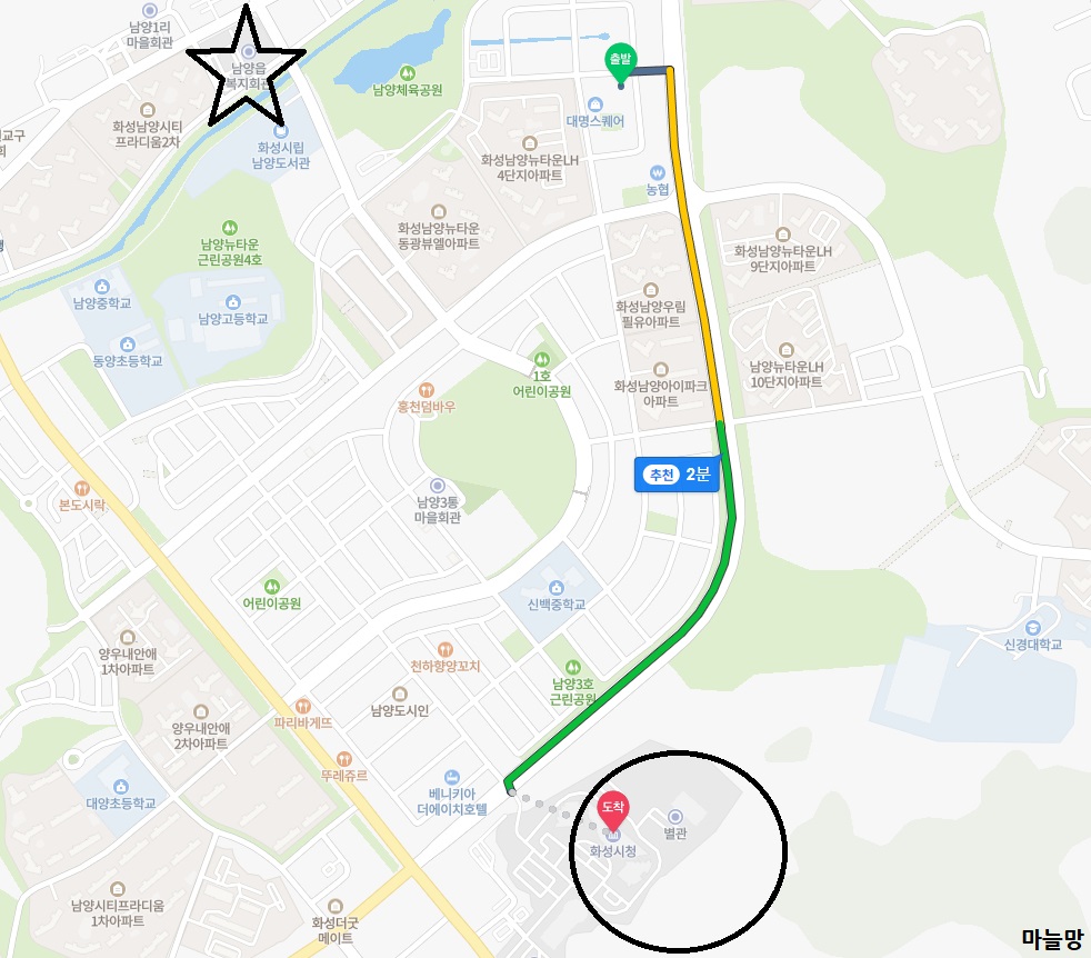 아마도 남양읍에 도장 새기는 다른 곳도 더 존재할 테지만 여기까지만 찾아봤고, 저의 계획은 그냥 화성시청으로 바로 가서 주차를 해놓고, 걸어 내려와서 3번에서 도장을 파고 시청에 다시 올라가서 혼인신고를 할 생각이었어요.