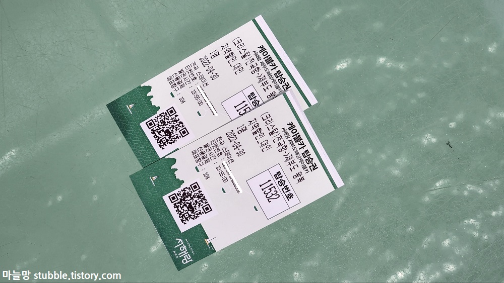 우리는 화성시민이라서 각각 신분증을 제시하고 표를 끊었고요. 밑이 훤이 보이는 크리스탈 캐빈으로 선택했어요.