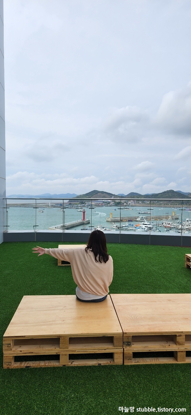 우리는 마지막으로 전곡항 탑승장 옥상 테라스로 향했습니다.