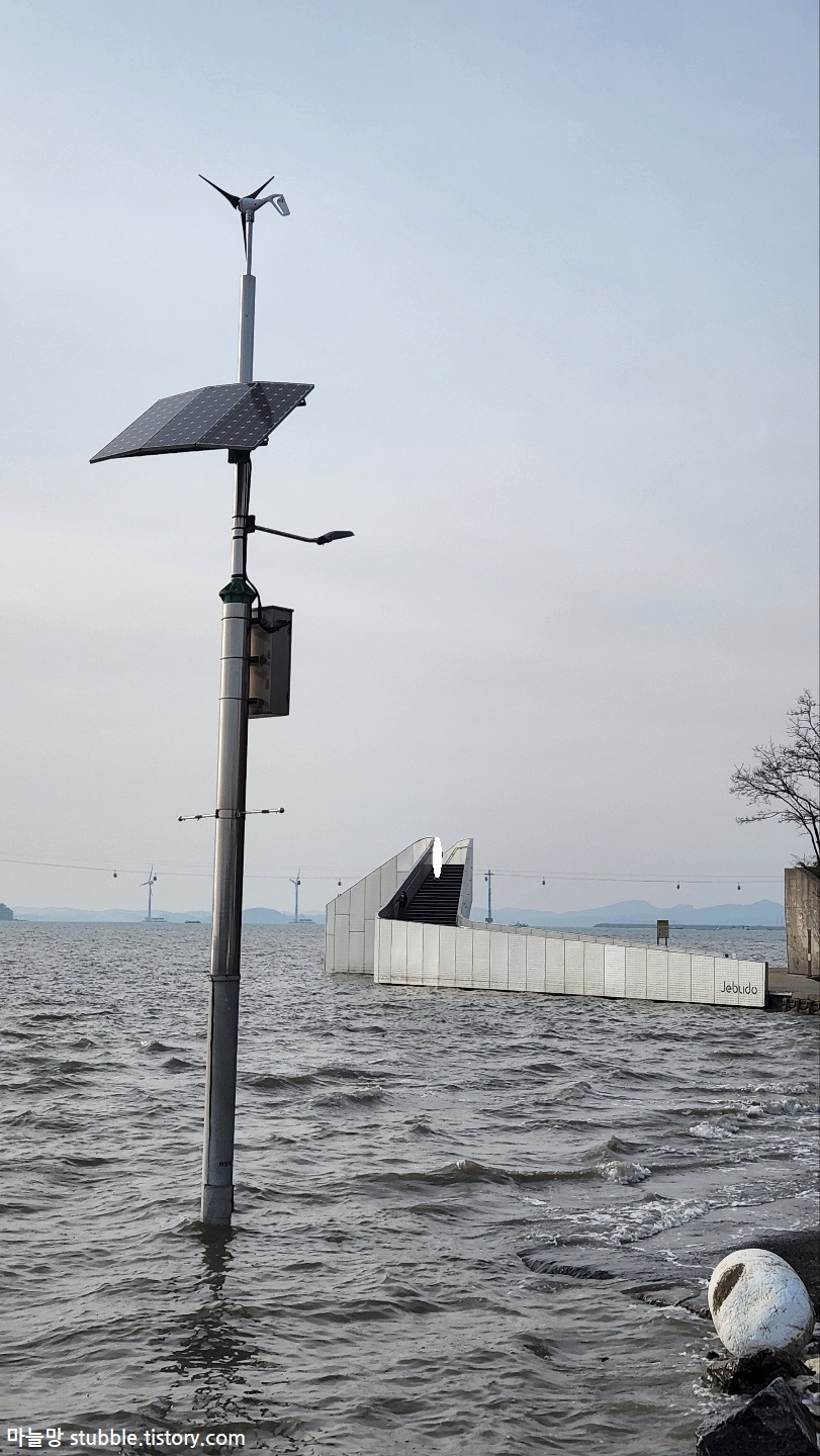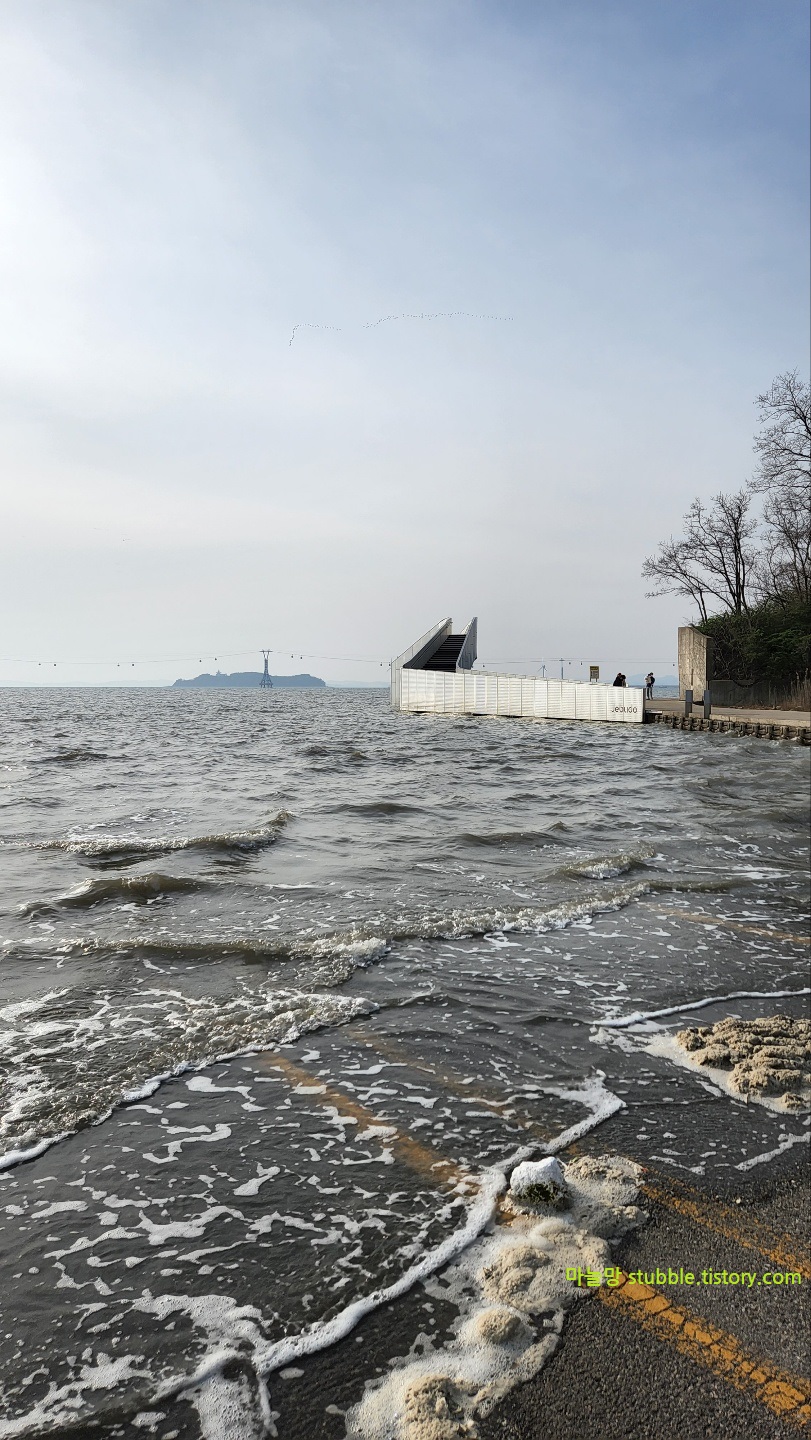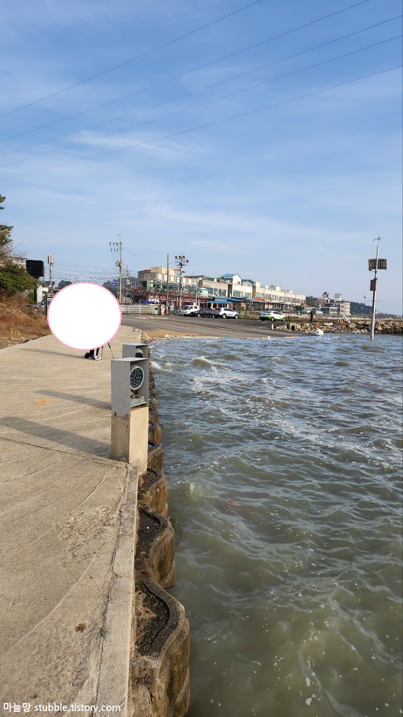 입구까지 이렇게 잠기는건 자주 볼 수 있는 일이 아니라서 한참을 멍하니 바다를 바라보면서 이렇게 이곳저곳 셔터를 눌렀던 것 같아요. 잠긴 도로와 넓은 바다, 일렁이는 파도가 이쁩니다.