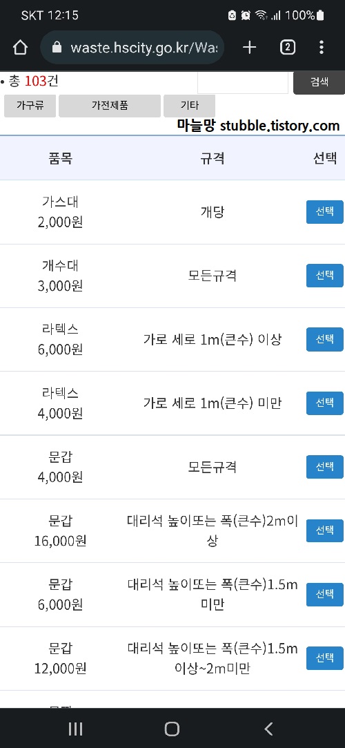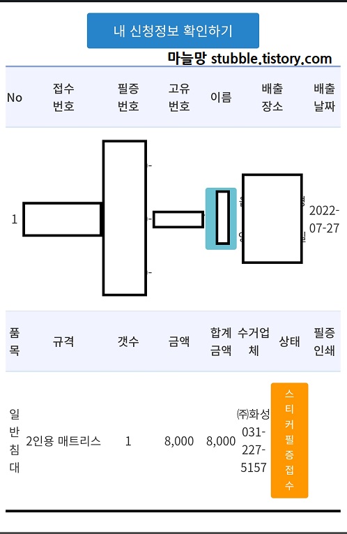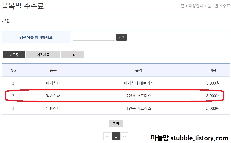 스티커를 부착하면 된다는것은 미리 알고 있어서 일단, 검색으로 얼마를 붙여야 매트리스를 데려가는지 찾아보았어요.