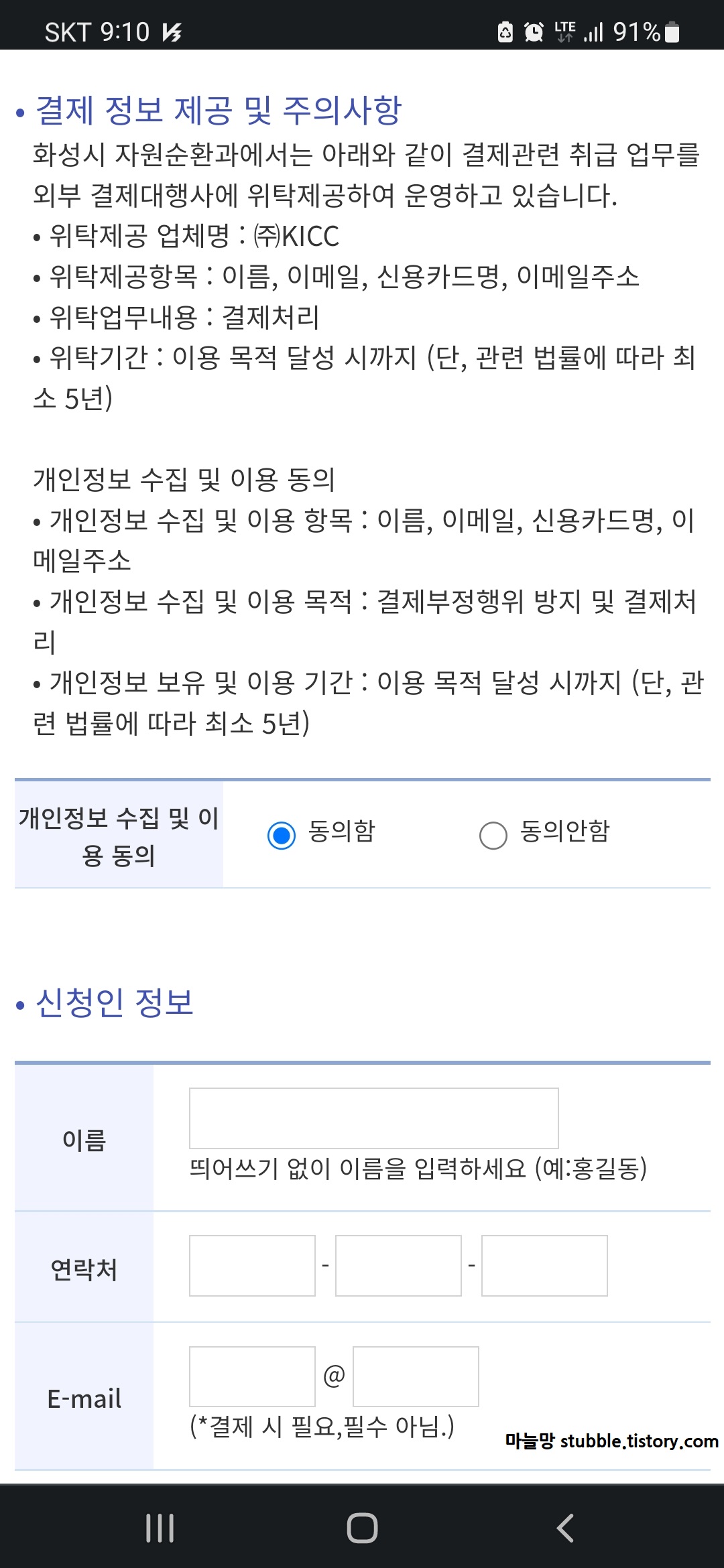 신청인 정보를 적습니다.