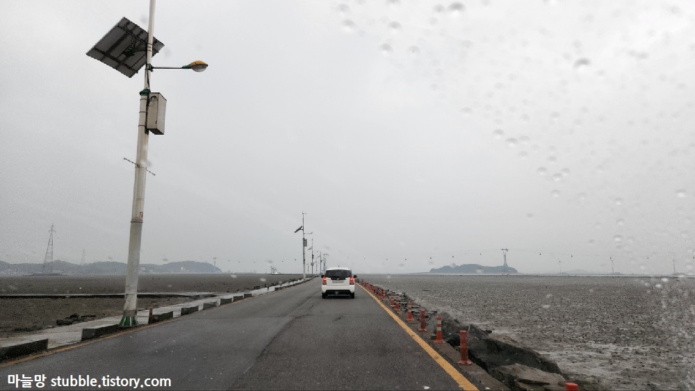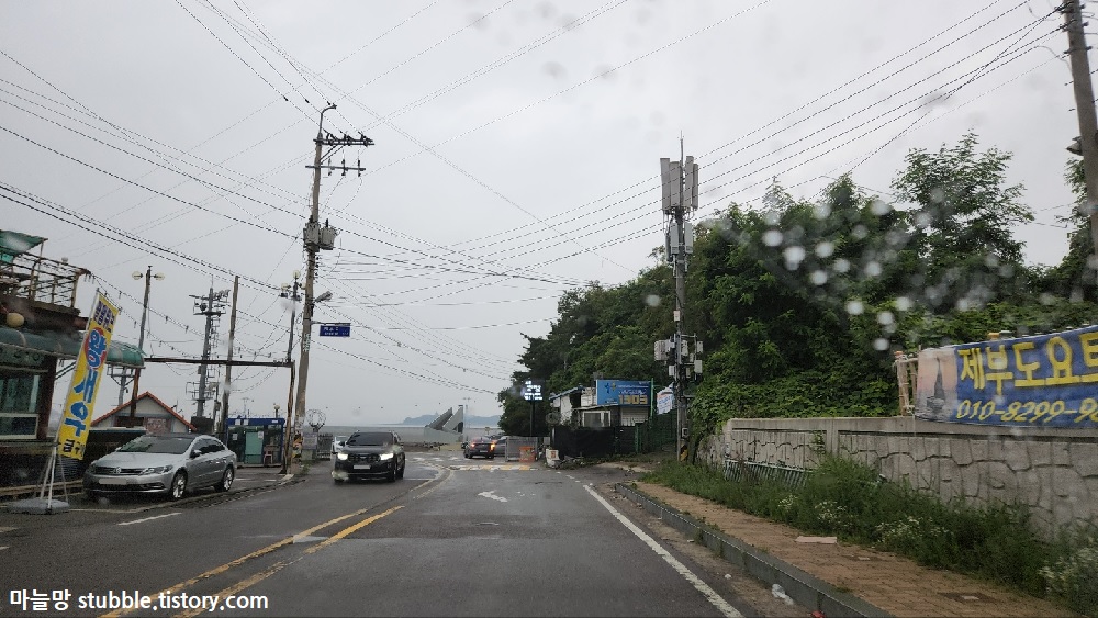 오늘의 제부도는 물길이 열려 있습니다. 비가 와서 그런지 아니면 물길이 열려 있어서 그런지 통행하는 차량도 많아 보이지 않았어요.