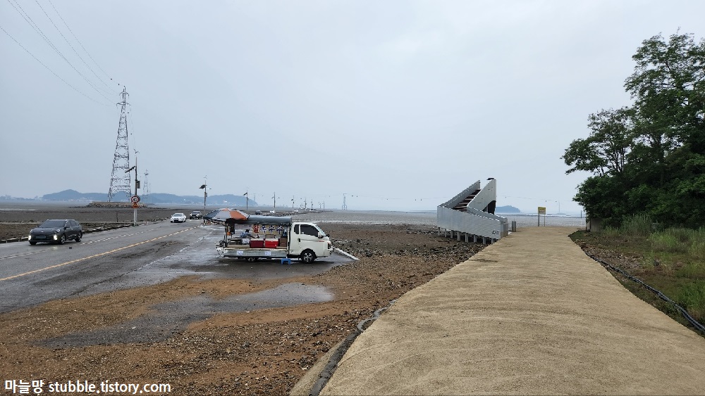 꽤 한산한 토요일의 제부도 바닷길입니다. 우리는 제부도에 차를 타고 들어갑니다. 제부도를 한 바퀴 드라이브 후에 이곳 서해랑 케이블카 제부도 승강장에 도착했어요.