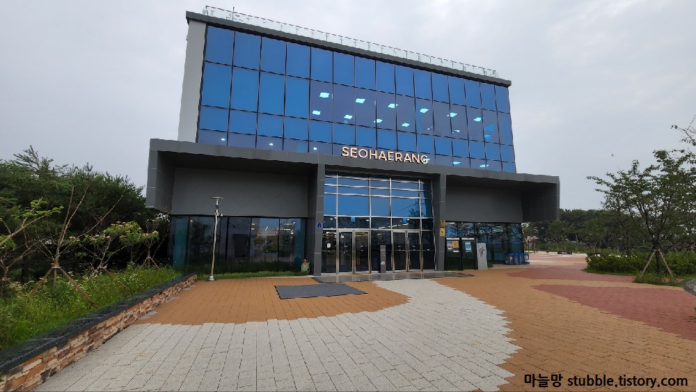 제부도 주차장에 차를 세우고 나서 서해랑 건물로 들어가려고 하면 이런 건물 외관을 보실 수 있을 거예요.