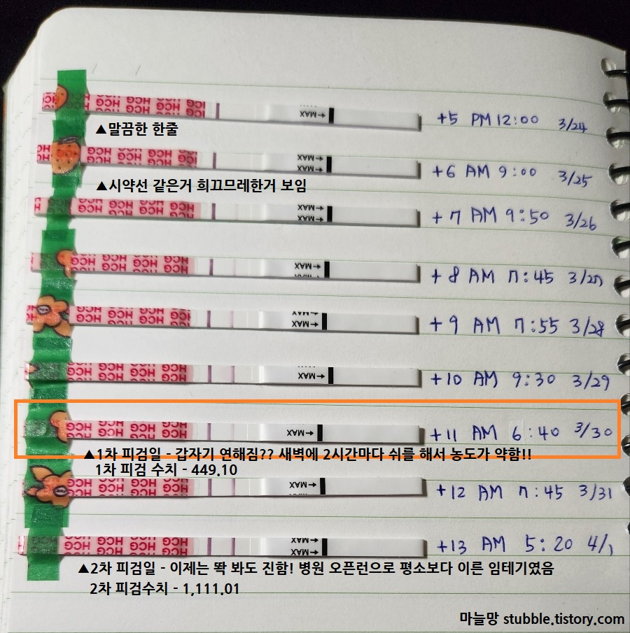 피검 수치가 좋아서 13일차 임테기를 마지막으로 이제 임테기는 더이상 안해도 될 것 같습니다.