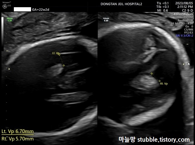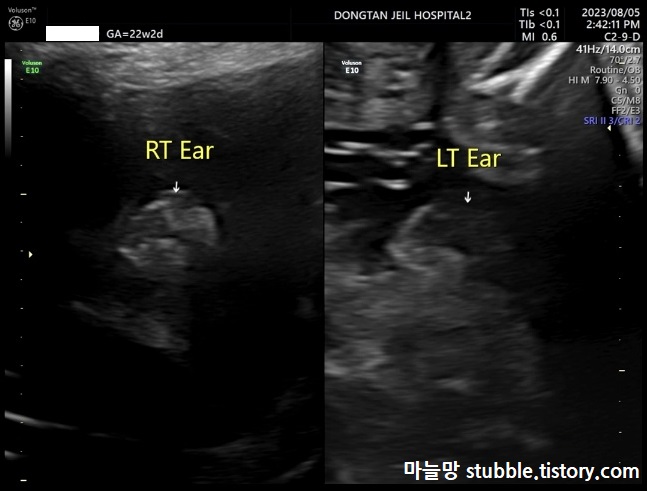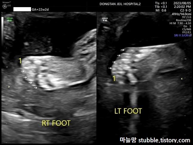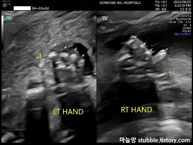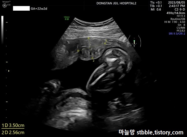 22주가 된 태아의 장기와 눈에 보이는 신체기관들을 모두 확인을 하는 오늘은 하나하나 보는데에도 아기가 협조를 안 해주어 힘이 들었지만, 선생님께 설명을 분명히 들었어도 전문가가 아니라서 뭔지 모르는 것들이 속출합니다!! 그리하여 기억력의 한계로 사진은 존재하지만 포스팅에는 몇 가지는 빠져 있습니다. 감안하고 봐주세요~