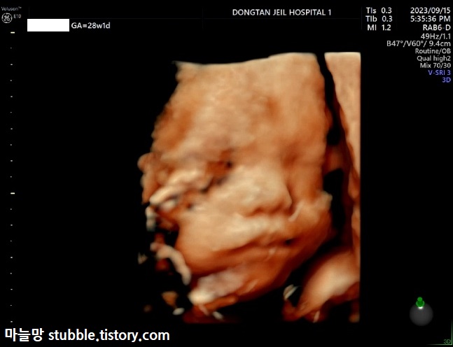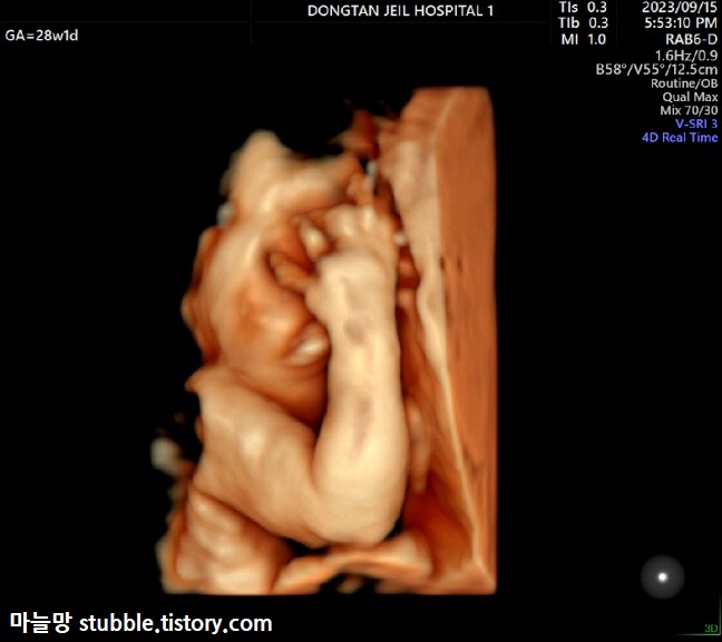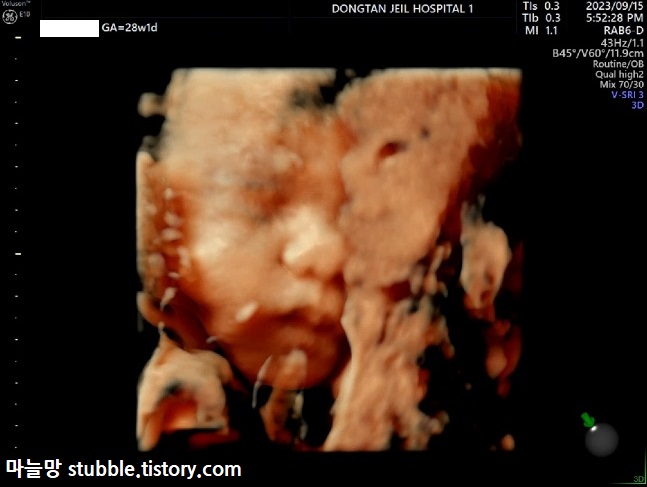 그리고 마지막 사진입니다. 베스트는 아니지만 눈에 자꾸 띄는 마지막 한 장을 올리면서 28주 입체초음파의 글을 마감합니다.