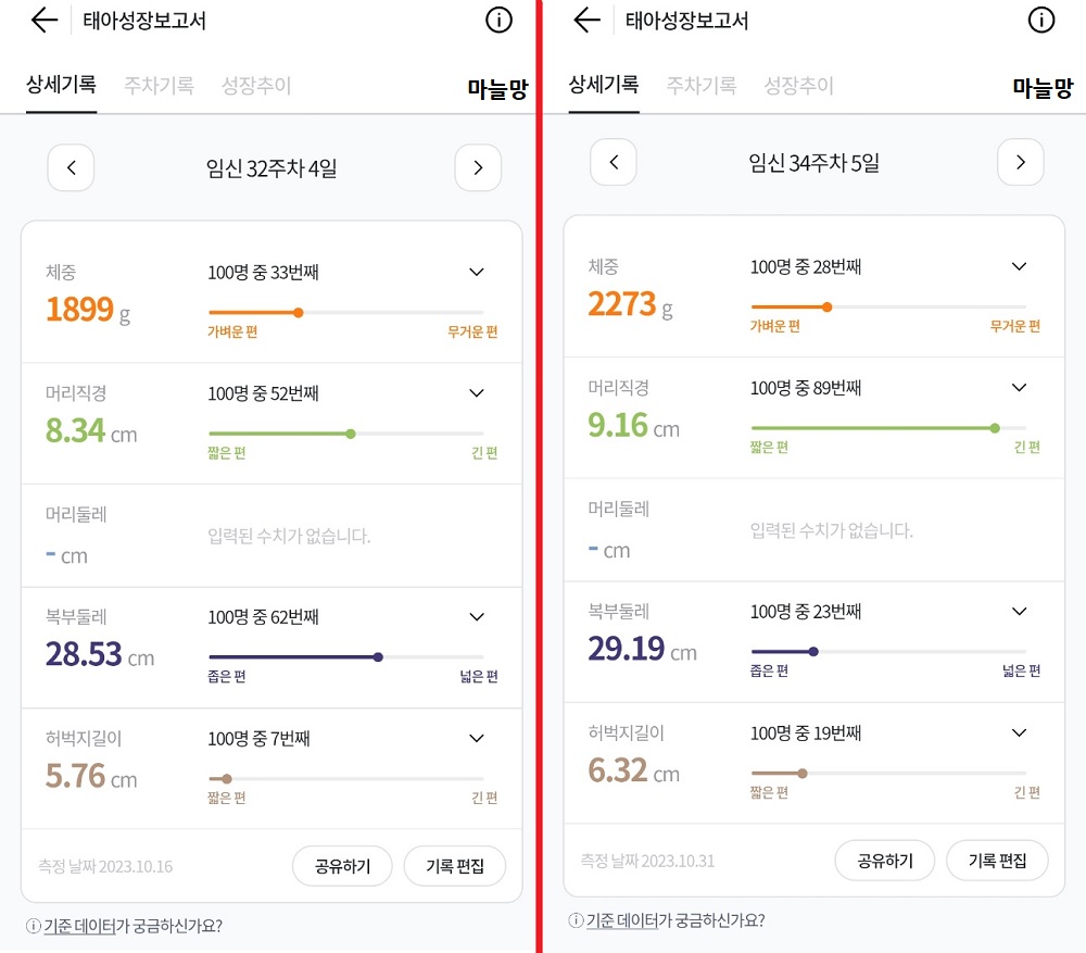 그 후, 우리아가 버팀이의 초음파를 봤어요. 우리 아기는 2주 사이에 몸무게가 374g이 늘었어요. 하지만 머리통 직경이 0.82cm이나 늘어서 머리 크다는 이야기를 들었답니다. 그래도 제왕절개를 할 거라서 문제없을 거라고 했답니다. 주수대비 아기 다리가 짧아서 키워보려고 키위, 샤인머스캣, 바나나 등의 과일과 고기로 이루어진 식사, 그리고 아기 주수 어플에서 고등어등의 생선등을 먹으라고 나오길래 생선구이집 일부러 찾아가서 먹고 결혼식 뷔페식 잘 먹고 돌아다녔는데 우리 아기가 키운 것은 머리직경(머리둘레)뿐이었어요 ㅠ.