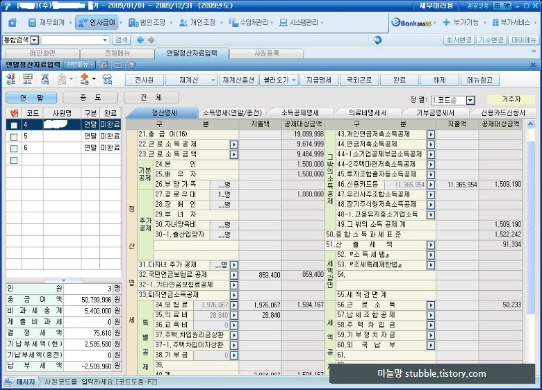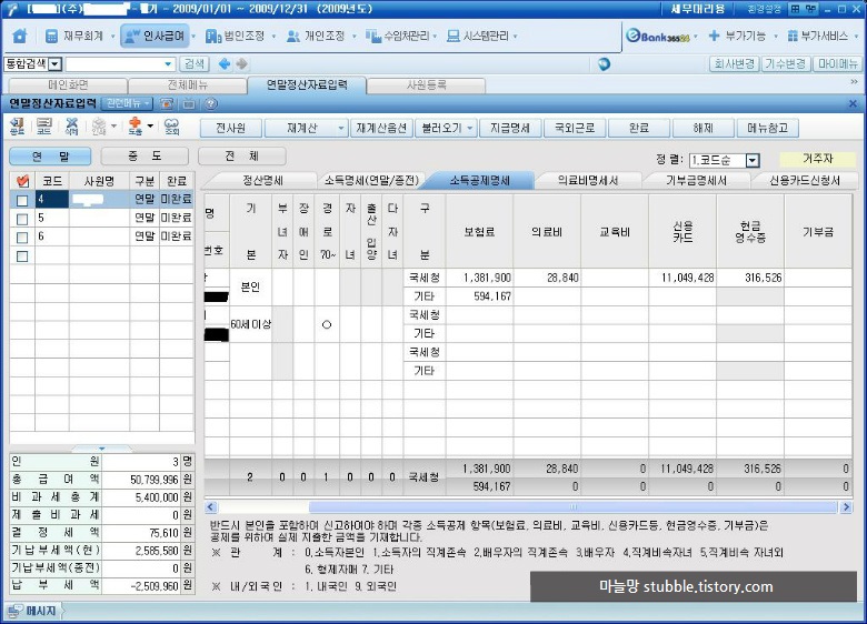 2010/02/23 - [세무사사무실] 2009년 귀속 연말정산 기간 (아이플러스 연말정산 하는법) 2탄.....................