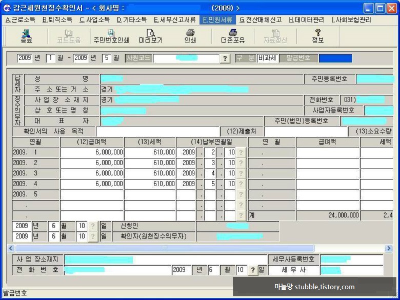 나 - 그러면 2008년 10월분부터 2009년 5월분까지 급여대장 보내드릴게요.