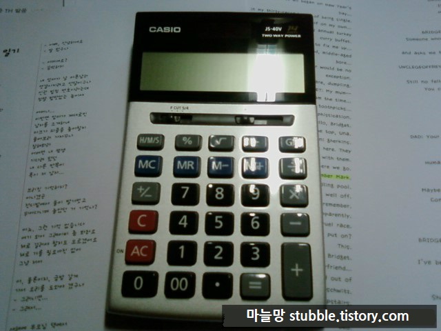 사무실에서 쓰던 계산기가 다른거고, 배열이 살짝 다른 이유도 있고 해서 그런지 아직은 키 배열 외우는데,