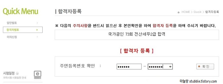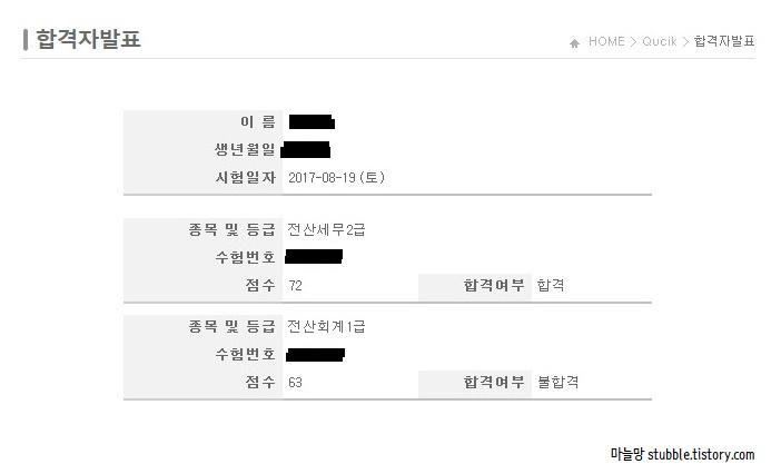 결과는 전산회계1급은 떨어지고 전산세무2급은 붙었습니다.