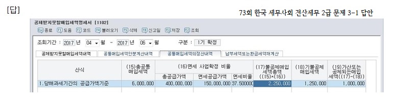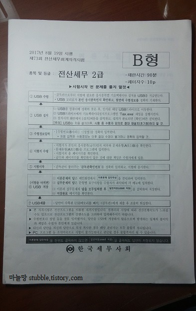 2017년 8월19일 12시20분 이후, 저는 전산세무2급 73회차 B형 시험지를 받아 시험을 치렀습니다.
