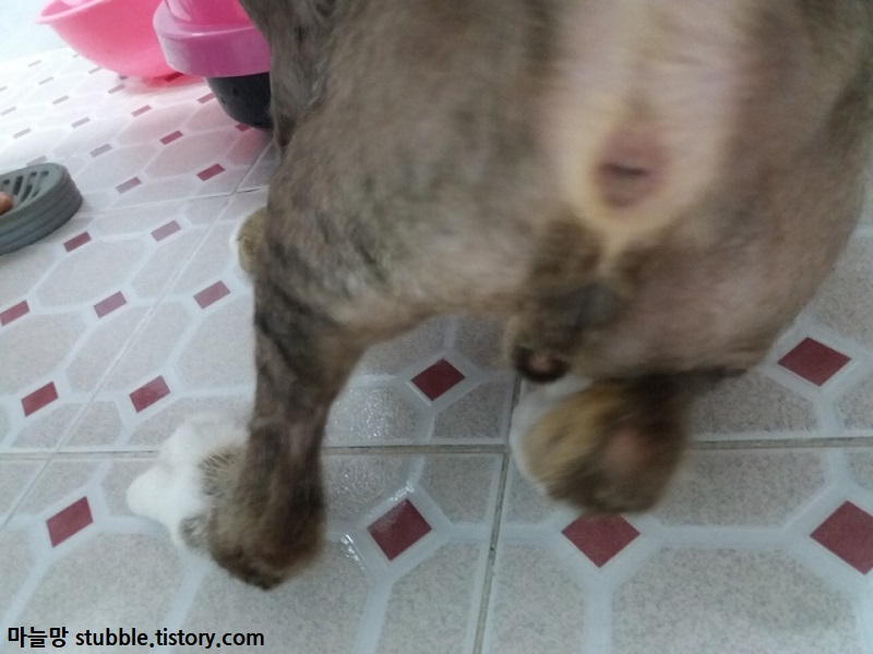 위의 사진은 우리 고양이 또또가 자주 똥꼬스키를 타며 항문낭을 터뜨리는 장소 입니다.