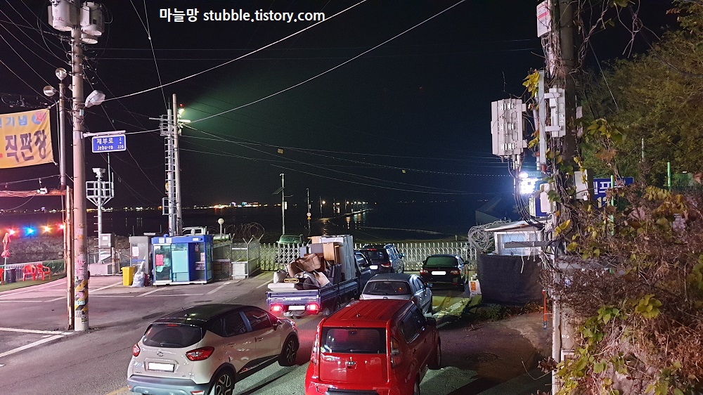 바다마트 언덕 끝에서 제부도에 못들어가고 기다리고 있는 차들을 촬영 하였다..