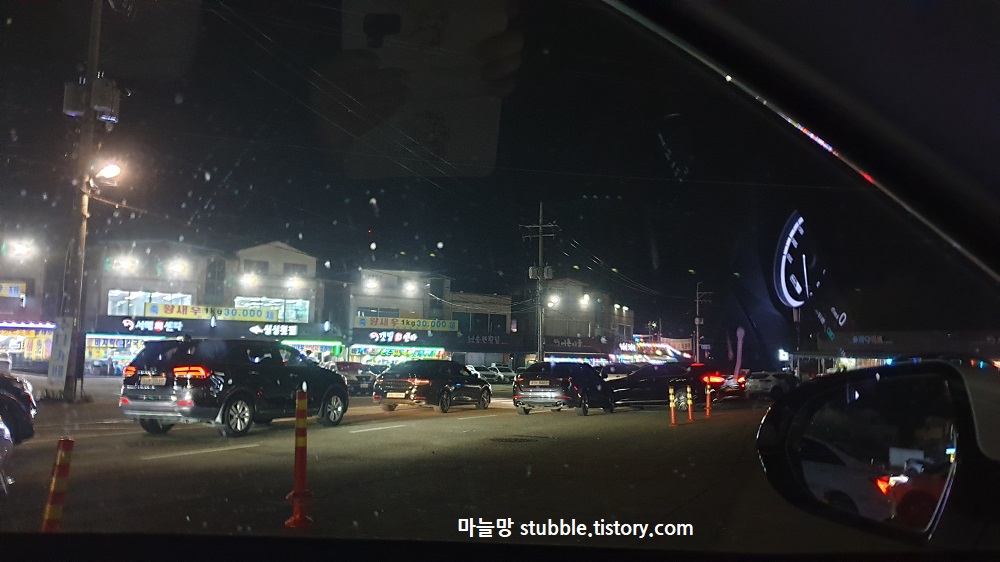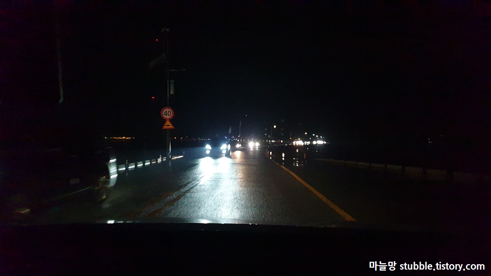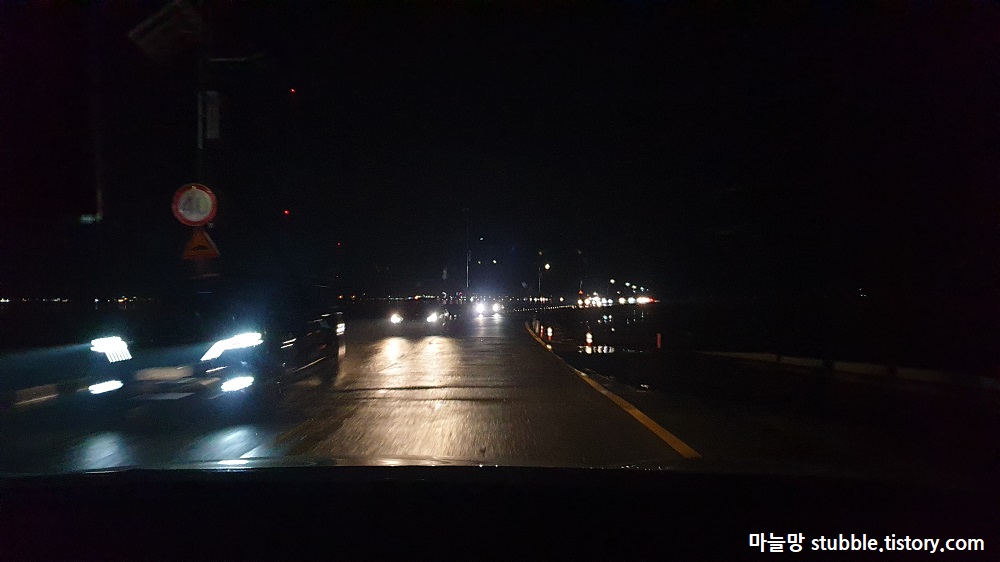 핸드폰 사진이라 지켜주지 못한 야간 화질이지만 땅이 젖어 있다는것은 충분히 느껴집니다.