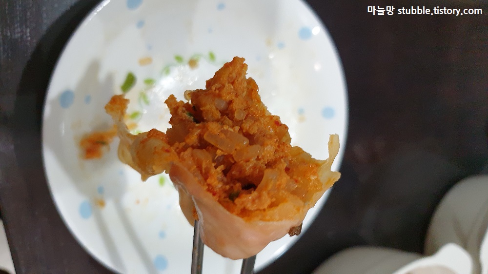 만두피도 얇고 살~짝 매콤했던 김치만두 입니다.