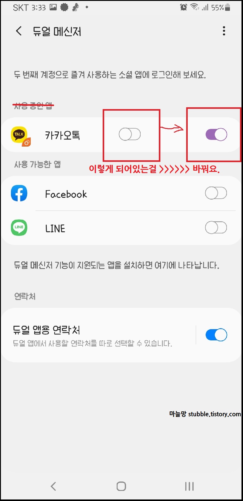 카카오톡 듀얼 버전을 사용하는 방법은, 스토어에서 카톡을 다시 다운로드하는 게 아니라 설정만 해주면 됩니다.