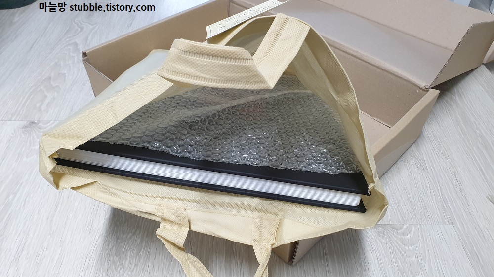 더스트 백 안에는 이렇게 뽁뽁이에 포장된 앨범이 있었습니다. 눈에 띄는 점은 각 페이지가 두꺼워서 굵직굵직함이 느껴집니다.