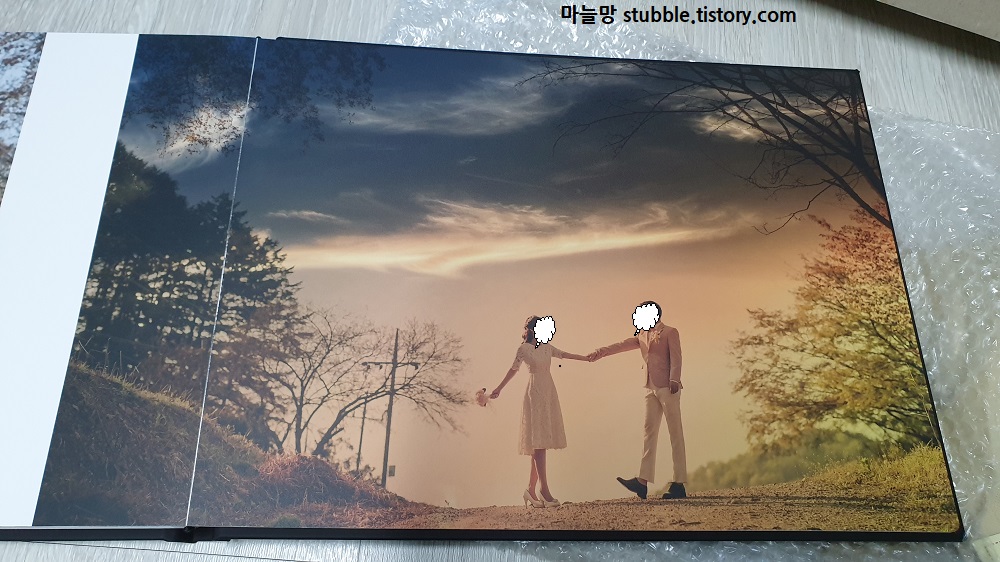 코팅된 느낌의 앨범 종이, 폭폭한 촉각! 눈으로 느껴지는 요런 질감 위에 웨딩사진들을 올려놓으니 이미 내용을 100% 알고 있던 사진인데도 감회가 새로웠어요. 이렇게 웨딩촬영 앨범 개봉기를 마칩니다.