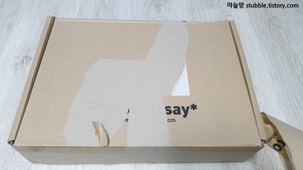 며칠 전에 스튜디오에서 택배비 4천 원 붙여달라고 연락 온 게 있어서 조만간 웨딩촬영 앨범이 올 것 같았는데, 그날이 오늘이었어요. 외부에 나갔다가 들어왔는데 문 앞에 딱! '나 웨딩앨범이오' 하고 누워있는 커다란 택배 상자를 발견했어요.