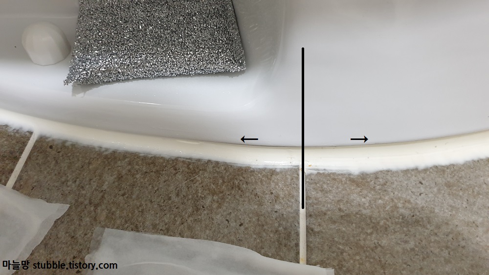 곰팡이뿐만 아니라 세월의 흐름에 따른 실리콘의 누리끼리함도 표백이 되어 새하얗게 된 것을 볼 수 있었어요.